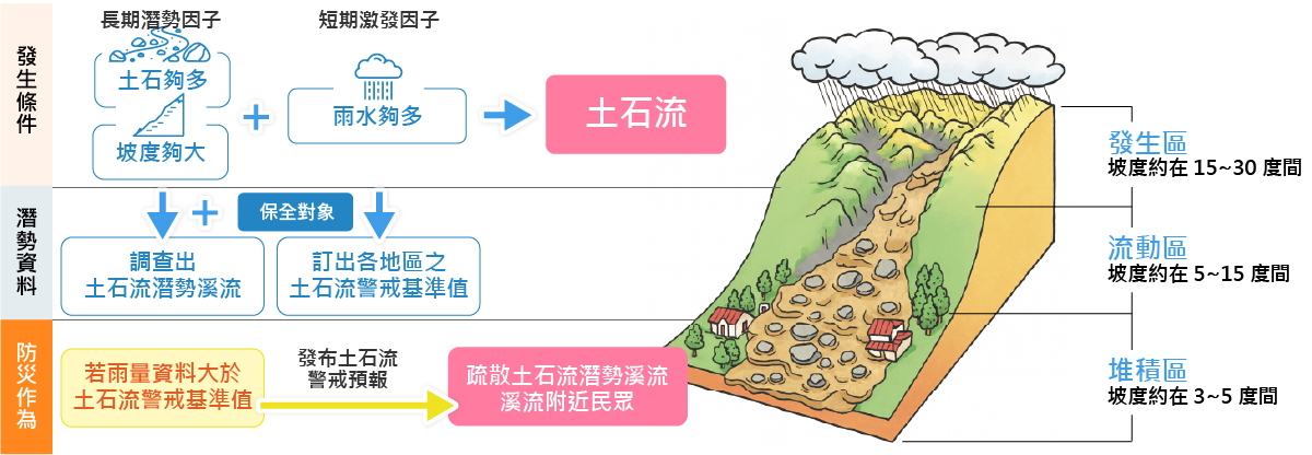 土石流發生條件與預警架構