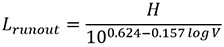 log(L) = 0.42×log(V×tan θd) + 0.935 式中L為土石流堆積扇長度 (m)、 V為土砂流出體積 (m3)、 θd為堆積扇之坡度(°)。 -