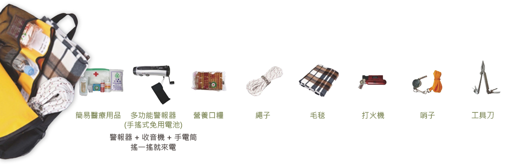 可攜帶及專業化的個人防災配備,是土石流防災專員守護家園的基本配件。